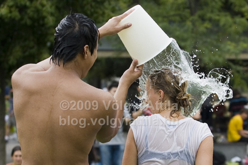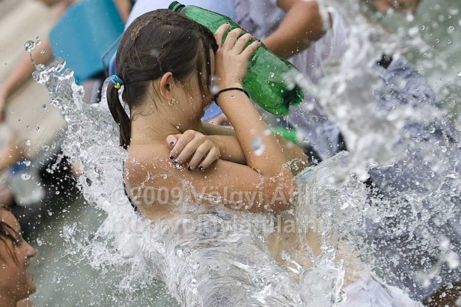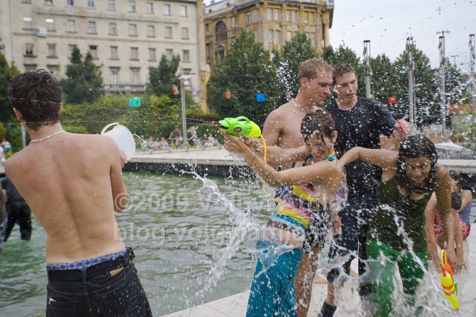 Nem első alkalommal rendeztek vizicsatát a Bazilika előtti Szent István téren, de nekem idén első alkalommal sikerült rajta részt vennem. A nyári rekkenő hőségben hatlamas felfrissülést eredményezett a köztéri vizi összecsapás, amiben előkerült mindenféle méretű és formájú vizipisztoly, vízágyú, műanyag palackok, és vödrök is. A tér kútjainál zajló utántöltéseknél ezek bizonyultak a leghatékonyabbnak.