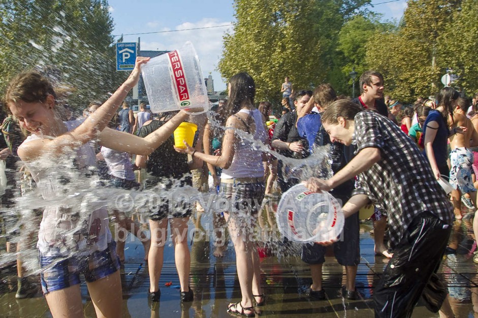 A Bank Center épülete előtt álló intelligens szökőkút nem csak víz utánpótlást biztosított a játékban érsztvevőknek, de gyakran komoly fejtörőt is okozott, hogy hogy lehetne a vizipisztolyokat feltölteni a szökőkút vizéből. A leghatásosabb vizi fegyvernek idén is a vödrök, lavorok és levágott szájú PET palackok bizonyultak, mivel a vizipisztolyok utántöltése mindig nehézkes, különösen, ha csak a lentről felfelé spriccelő szökőkút áll rendelkezésre hozzá. De a hangulatot ez sem rontotta el.