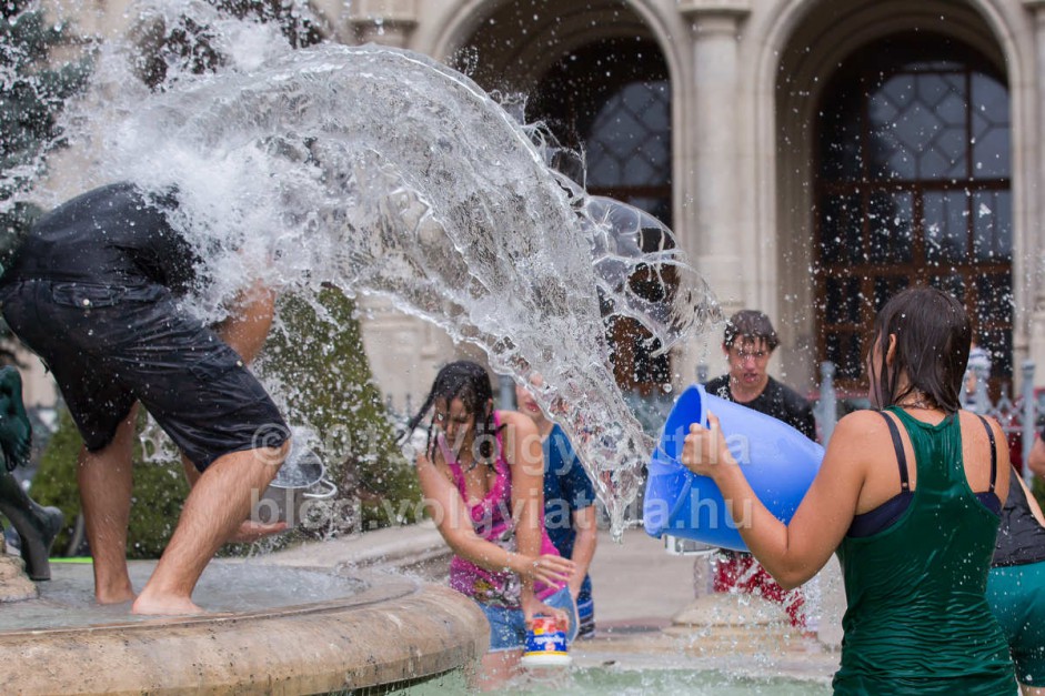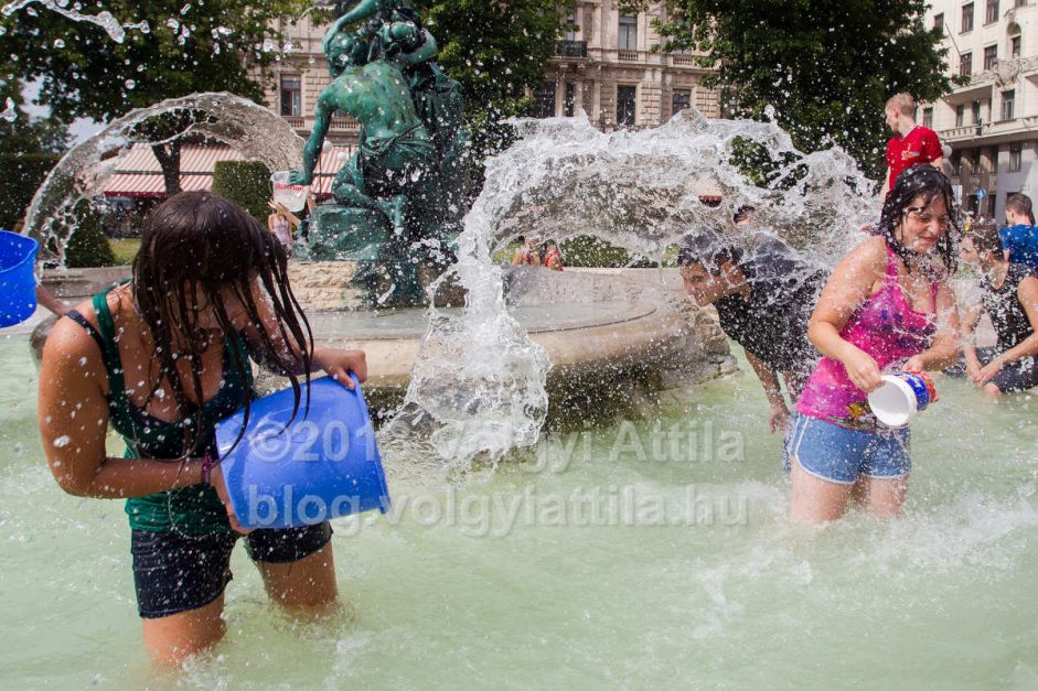 Idén is megrendezték a szokásos nyári vizicsatát. Ezúttal a Vigadó téri szökőkútban hűtötték le magukat a szórakozásra vágyó fiatalaok. A résztvevők ezúttal talán valamivel kevesebben voltak, mint a korábbi években, a lelkesedésük viszont legalább olyan heves volt, mint az időjárás.