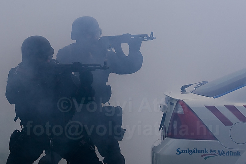 Rendőrségi kommandósok bemutatója a Városligetben megrendezett Rendőrnapon.