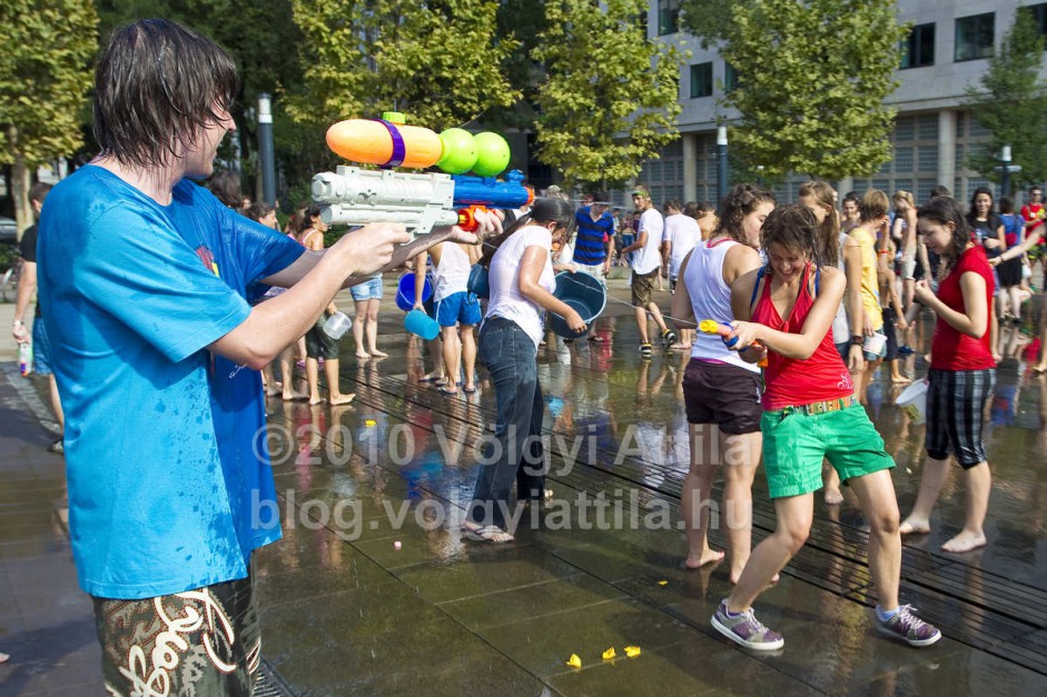 A Bank Center épülete előtt álló intelligens szökőkút nem csak víz utánpótlást biztosított a játékban érsztvevőknek, de gyakran komoly fejtörőt is okozott, hogy hogy lehetne a vizipisztolyokat feltölteni a szökőkút vizéből. A leghatásosabb vizi fegyvernek idén is a vödrök, lavorok és levágott szájú PET palackok bizonyultak, mivel a vizipisztolyok utántöltése mindig nehézkes, különösen, ha csak a lentről felfelé spriccelő szökőkút áll rendelkezésre hozzá. De a hangulatot ez sem rontotta el.