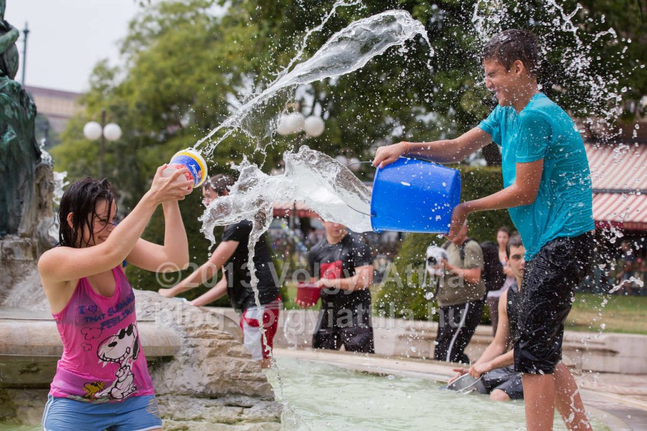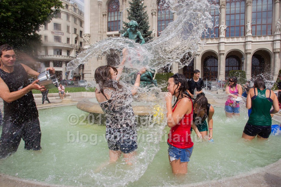 Idén is megrendezték a szokásos nyári vizicsatát. Ezúttal a Vigadó téri szökőkútban hűtötték le magukat a szórakozásra vágyó fiatalaok. A résztvevők ezúttal talán valamivel kevesebben voltak, mint a korábbi években, a lelkesedésük viszont legalább olyan heves volt, mint az időjárás.
