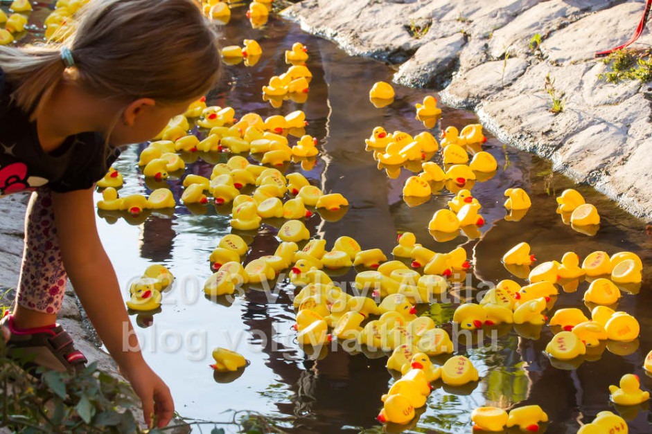 A szentendrei Rotary Club már évek óta minden nyáron megrendezi jótékonysági gumikacsa versenyét. Nagyjából ezer sárga gumikacsát borítanak a várost kettészelő kis patakba. A békésen csordogáló patakon hatalmas gyerekzsivaj mellett úsznak le a kacsák, hogy a híd alatt kijelölt célvonalnál kiderüljön, kinek a kacsája nyeri a tombola szerű játék főnyereményét, ami 2013-ban egy gyerekbicikli volt.
