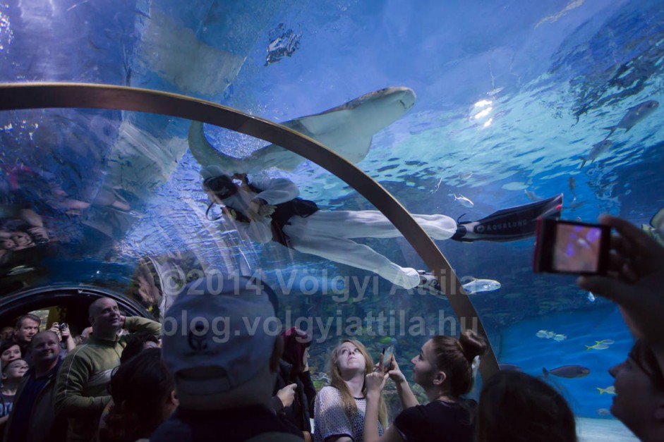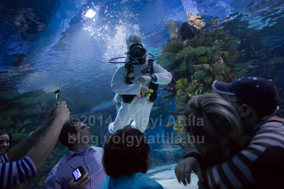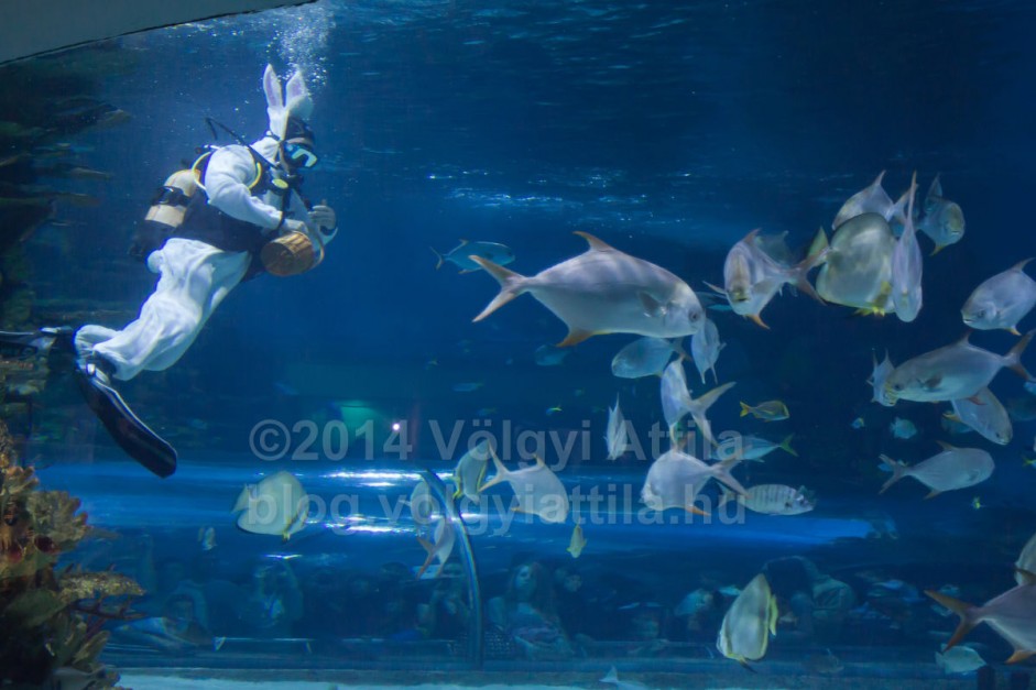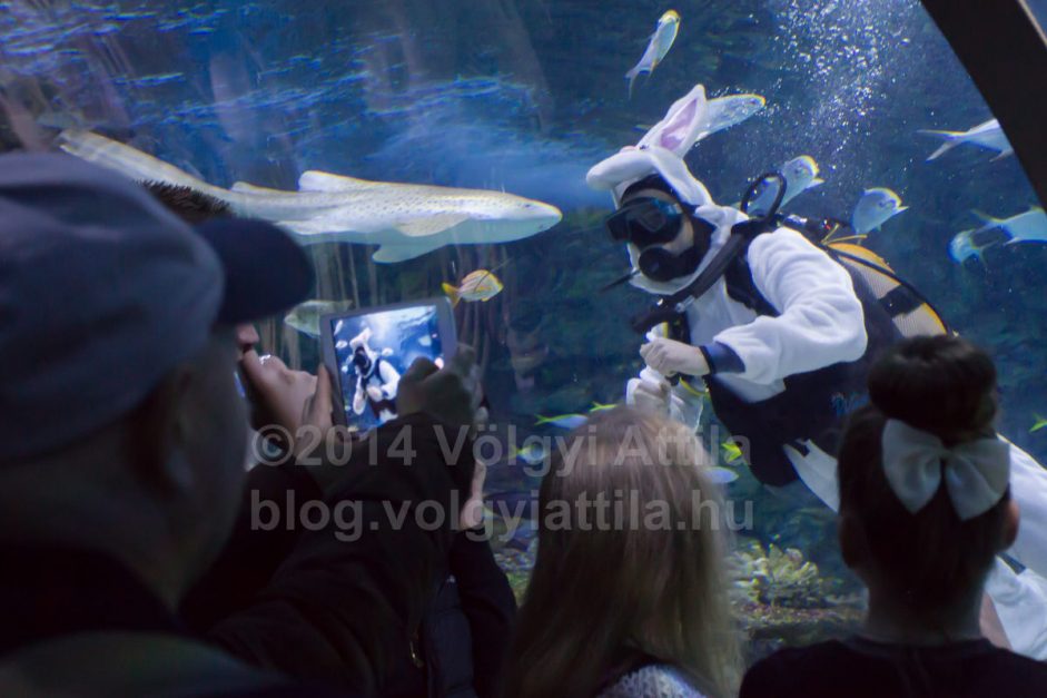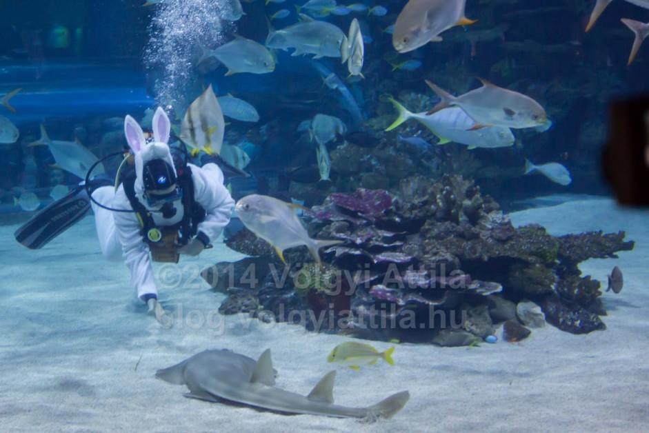 A karácsonyi búvár mikulásokkal ellentétben nem eteti meg az állatokat, csak összeszedi a medencében elrejtett tojásokat. Jól mutat a víz alatt a nyuszi jelmez. Csak a füleit érdemes volna jobban rögzíteni, mert így némelyik képről eltűntek a fülek.