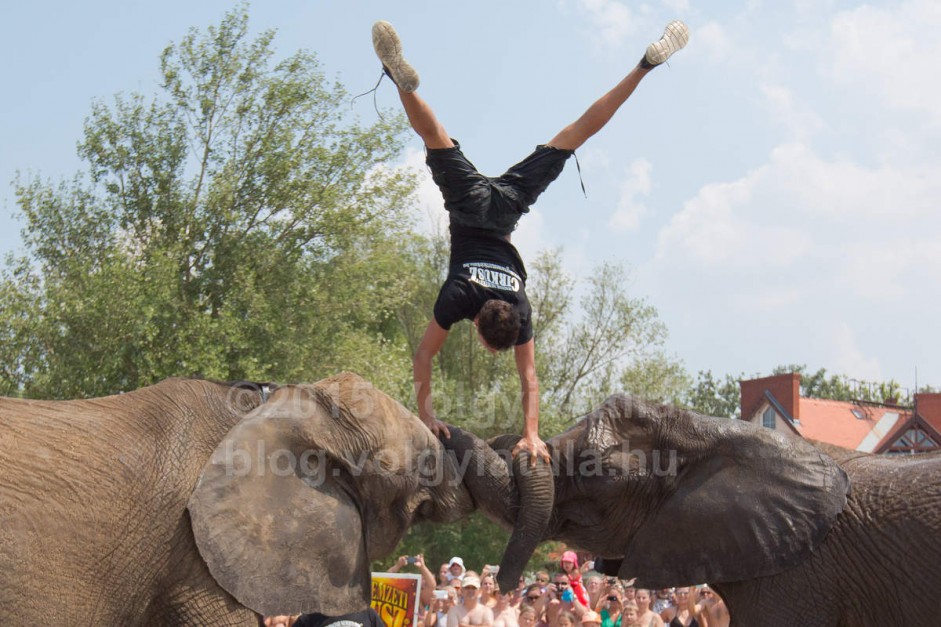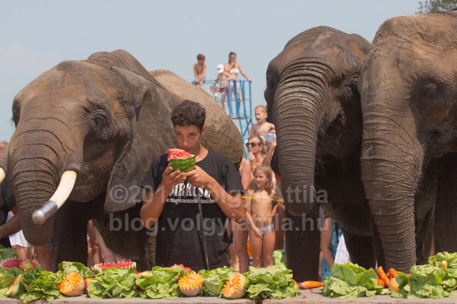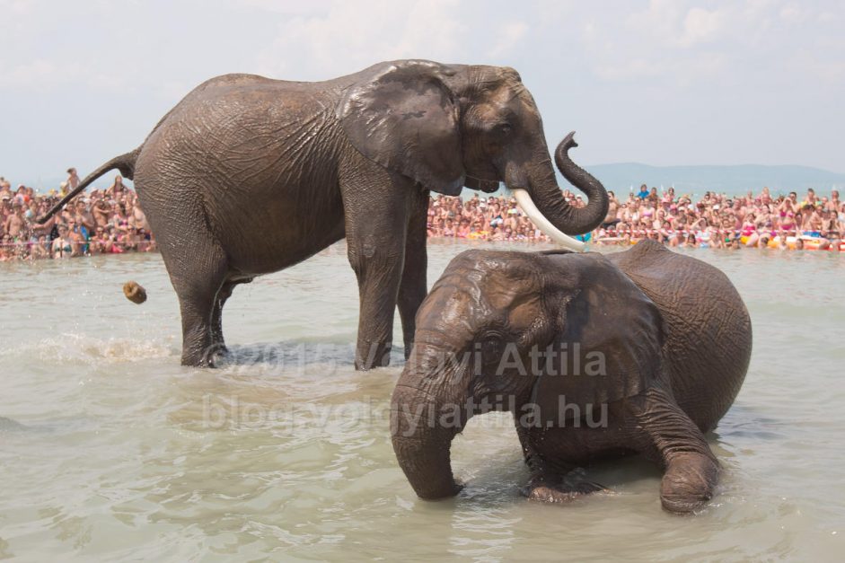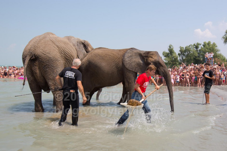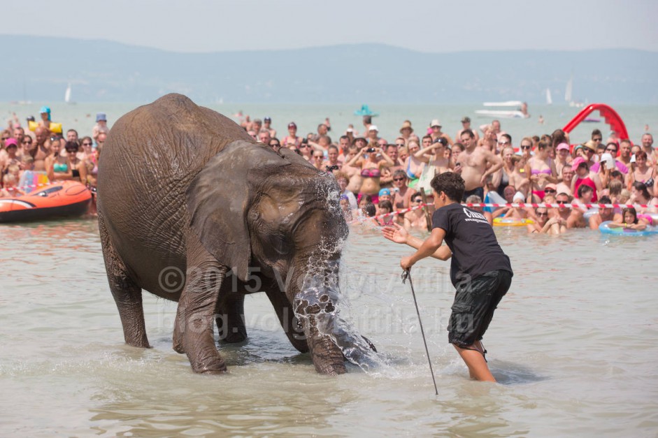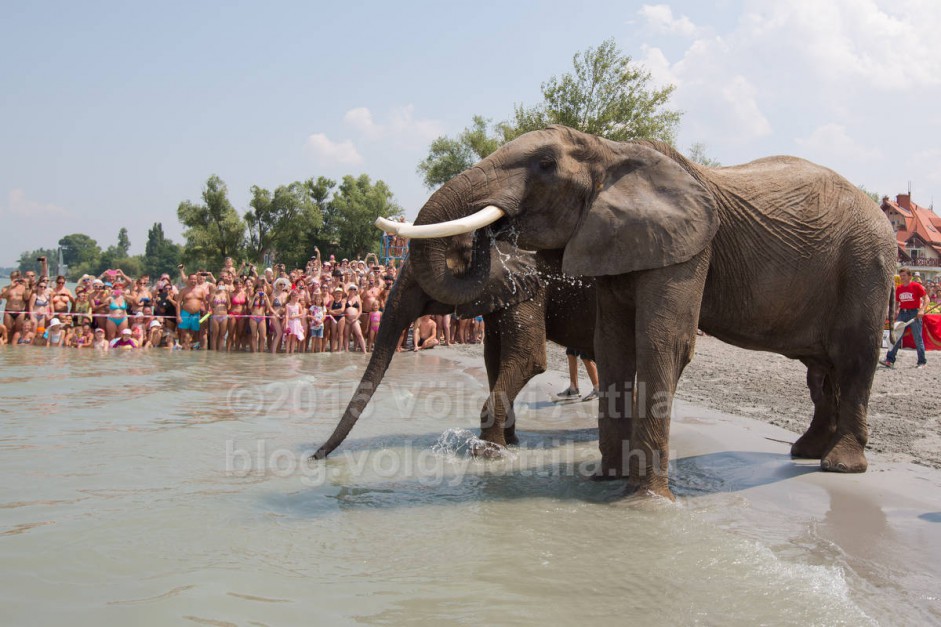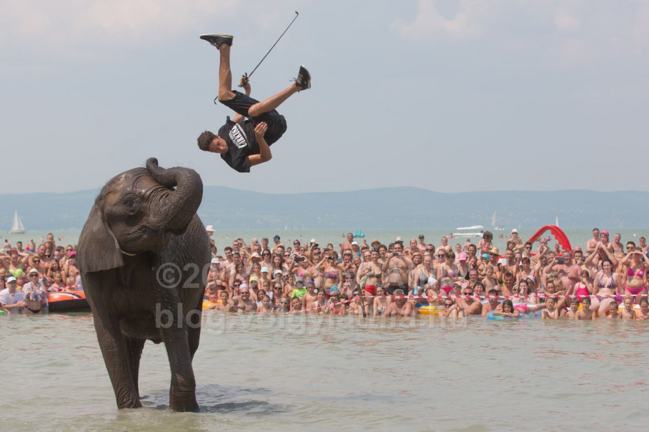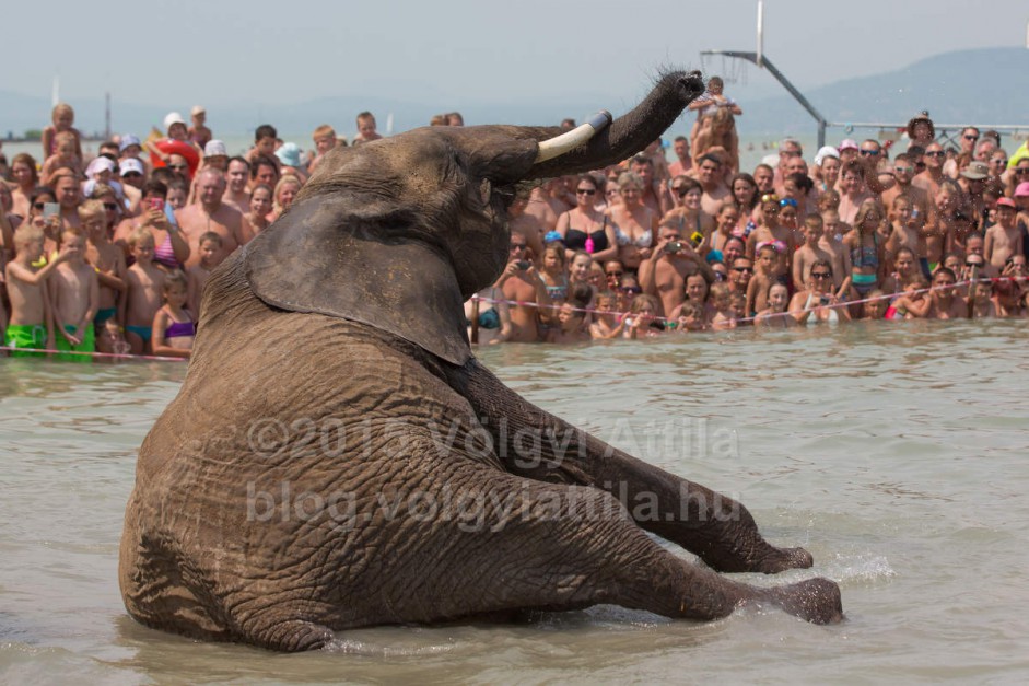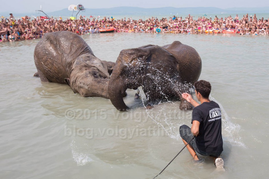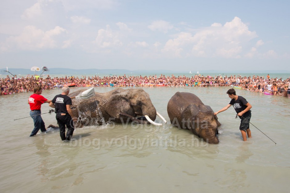 A hétvégén ismét megrendezték a Cirkuszok Éjszakáját, amit a Balaton partján a tavalyi évhez hasonlóan idén is a Caselly család elefántjainak fürdőzésével reklámoztak. Ahol gyakrabban előfordulnak elefántok, ott hétköznapibb látvány az emberek közt fürdőző elefánt is, de Magyarországon ez különlegesség. Nem csoda, hogy sokan kíváncsiak voltak a lehetőségre, amit néhány helyen előre is meghirdettek, hogy fürödj együtt elefántokkal. Akadtak is szép számmal, akik élni akartak ezzel a nem mindennapi lehetőséggel.