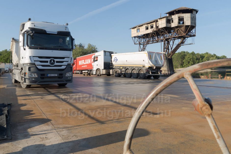 A hivatalos bejelentés szerint 2020. június 2-án, kedden reggel indult volna újra az Esztergom és Párkány között közlekedő teherkomp forgalom. Ahogy ilyenkor illik, még aznap el is mentem megörökíteni. Csak a helyszínen derült ki, hogy a beharangozott időben a komp mégsem indult el újra. Sőt még másnap sem járt. Az okát nem firtattam, gondolom valamilyen engedélyezés, vagy egyéb adminisztratív dolog miatt késett az újraindulás.