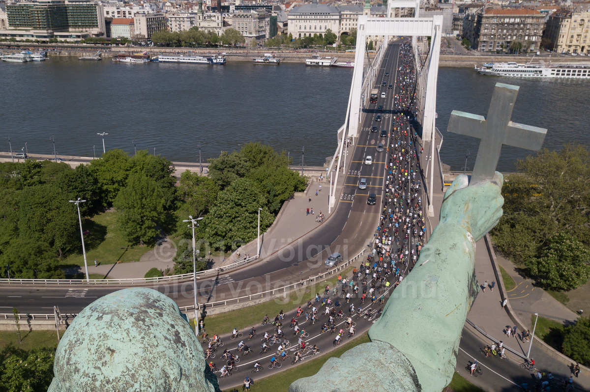 Tízezrek vesznek részt az I Bike Budapest kerékpáros felvonuláson Budapest belvárosában, hogy a bringás közlekedés fontosságára hívják fel a figyelmet. 2018. április 22.