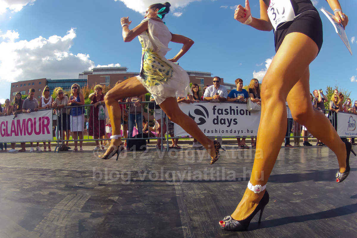 Résztvevők versenyeznek a Glamour magazin Tűsarkú Futóversenyén a budapesti WestEnnd tetőteraszán. Budapest, Magyarország. 2012. szeptember 08.