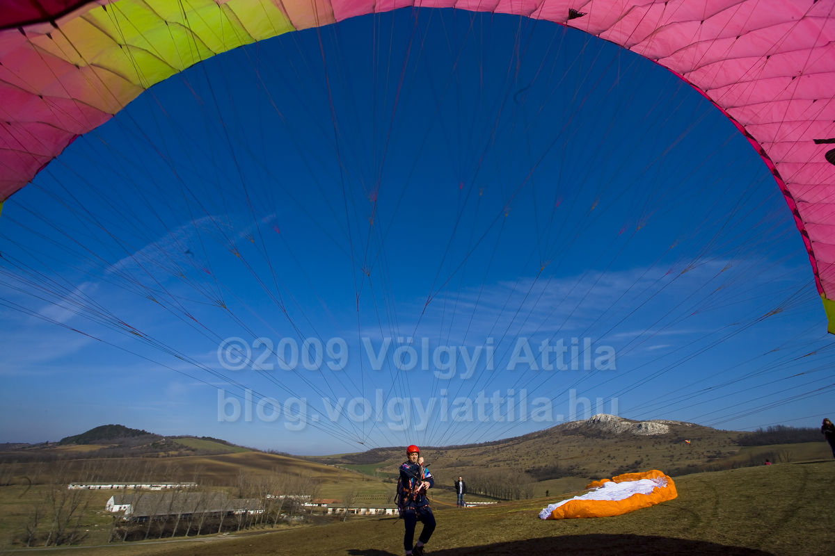 Siklóernyős gyakorol a budai hegyekben. 2009. március 14.