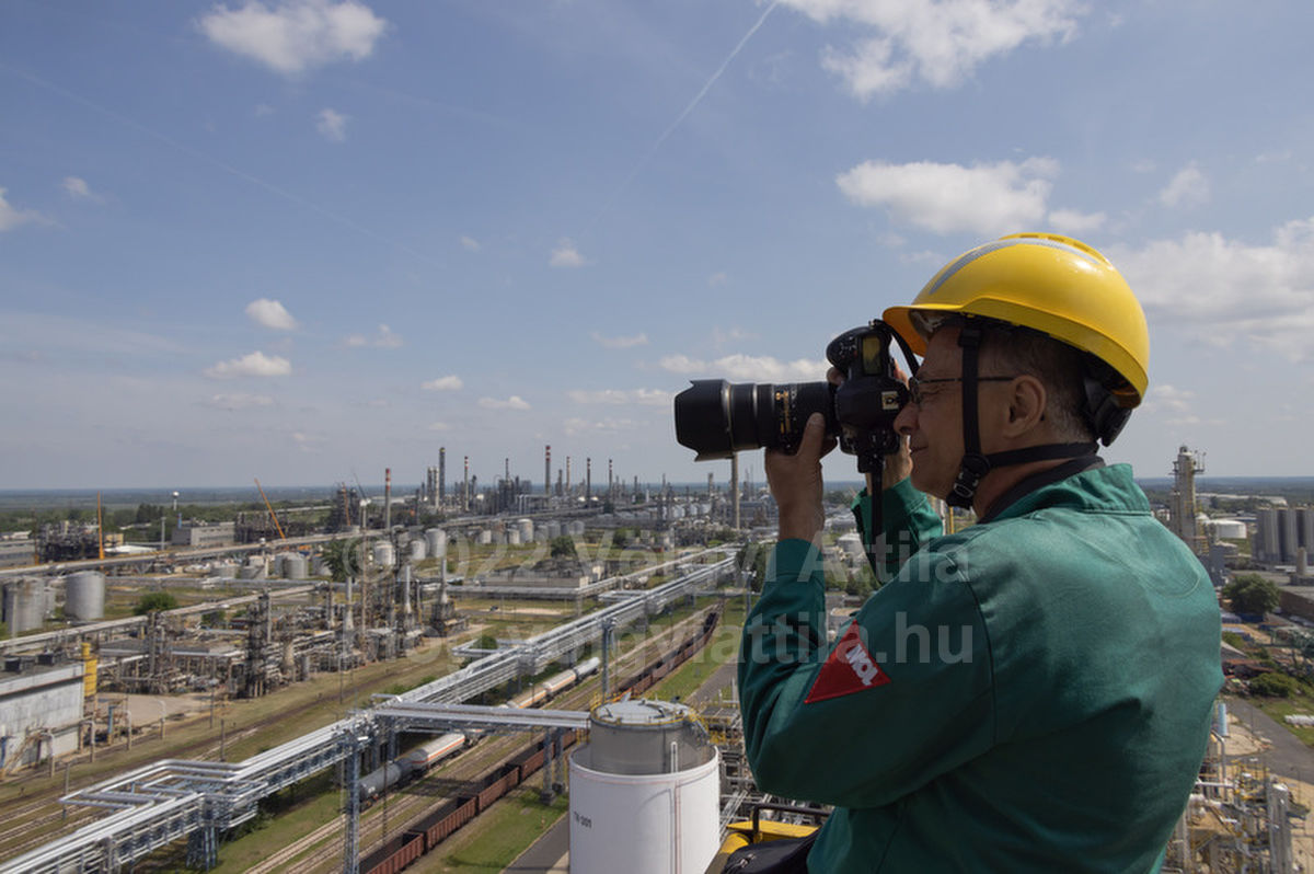Fotós fényképezi a MOL Százhalombattai olajfinomító létesítményét 2022. május 24.